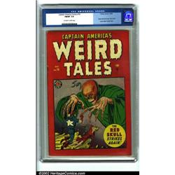Captain America Comics #74 (Timely, 1949) CGC FN/VF 7.0 Off-white to white pages. The mere sight of this issue has been known to cause cardiac arrest in Cap collectors. In fact, Captain America's Weird Tales #74 is the leading cause of divorce in three states! But seriously, folks, this is an exceptionally scarce issue, and will definitely command some competitive bidding; better pick this one up before it vanishes into someone else's collection forever. Overstreet 2002 FN 6.0 value = $1,380; VF 8.0 value = $3,000. Important notice: We expect to be auctioning lots at the rate of 200-250 per hour. Sometimes eBay Premier live bid software cannot keep up with that pace, so we strongly recommend that you place a realistic proxy bid now as insurance to avoid disappointment. Also please note that all Heritage/CAA lots purchased through eBay Premier carry a 20% Buyer's Premium.