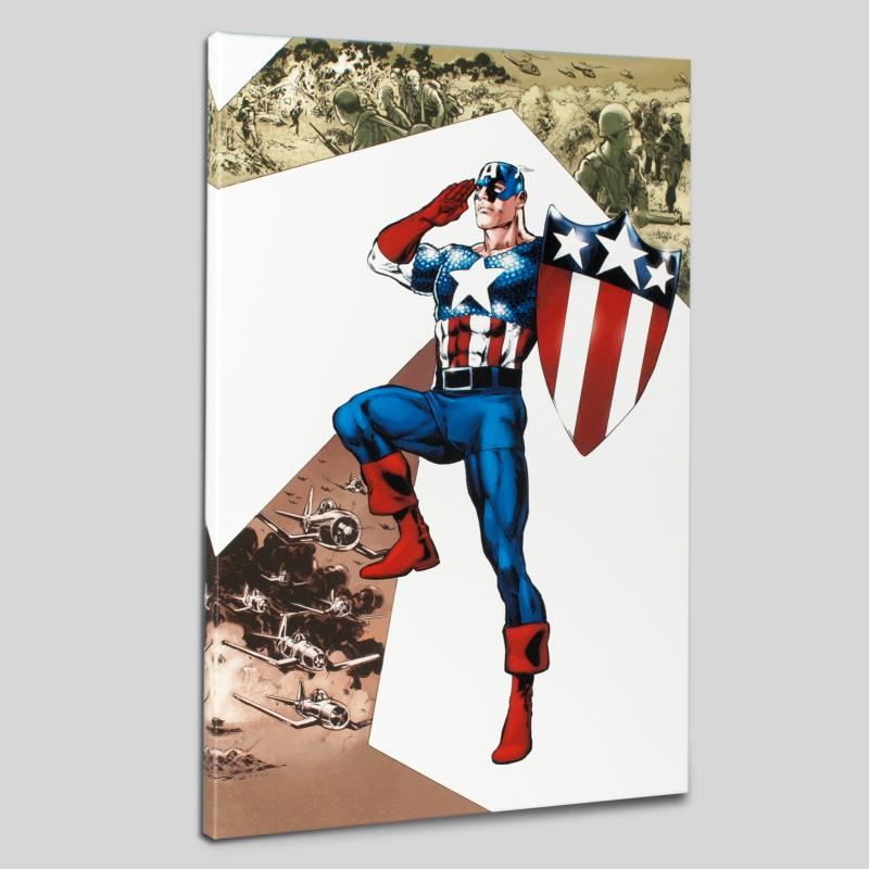 A piece of comic book history, this limited edition, from original art by Phil Jimenez, depicts a heroic Captain America. Initially working for DC Comics, Phil Jimenez signed an exclusive contract with Marvel in 2007. Since then, he has been one of four artists working on "Amazing Spider-Man" and he has also worked on various X-Men titles. "Captain America Corps #2" is a limited edition giclee on canvas by Phil Jimenez presented by Marvel Comics. This piece comes gallery wrapped. Includes Certificate of Authenticity! Measures approx. 18" x 27" (image); 1.5" (depth).