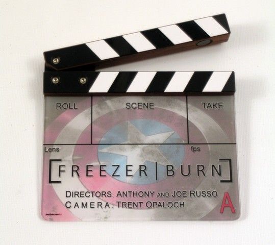 A "Captain America 2" (2011) clapperboard made as a crew gift and signed on the back in pen by Captain America himself, Chris Evans. (approx. 6" x 5 1/2").