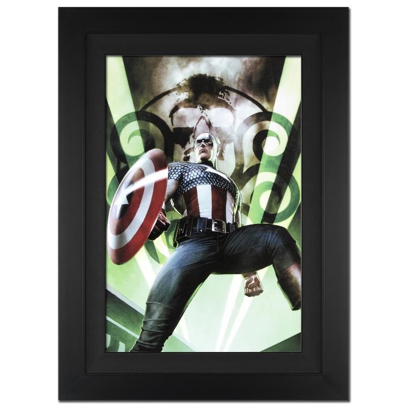 A piece of comic book history, this limited edition, from original art by Adi Granov, depicts a heroic Captain America. While working for Marvel, Adi Granov has drawn covers for Spider-Man, X-Men, and the Fantastic Four. Granov also helped design the Iron Man suit for the recent film adaptation. "Captain America: Hail Hydra #1" is an extremely limited edition giclee on canvas by Adi Granov presented by Marvel Comics, hand signed by the Great Stan Lee (1922-2018) and numbered out of only 10! This piece comes custom framed and ready to hang. Includes Certificate of Authenticity! Measures approx. 25" x 34" (with frame), 18" x 27" (image).