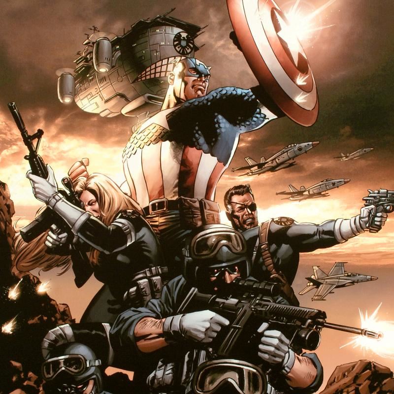 A piece of comic book history, this limited edition, from original art by Steve Epting, features the classic characters from the Captain America franchise. Steve Epting began working with Marvel Comics in the early 1990s. His first assignment was a six part Avengers series, thereafter he became a full time penciler on the Avengers. More recently Epting has been working on the Fantastic Four as well as Captain America. "Captain America N9" is a limited edition giclee on canvas by Steve Epting presented by Marvel Comics, numbered and hand signed by the great Stan Lee! Includes Certificate of Authenticity! Measures approx. 18" x 27" (image).