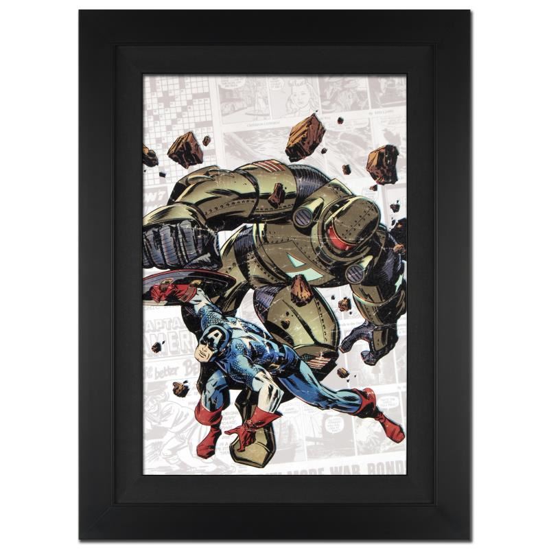 A piece of comic book history, this limited edition, from original art by Butch Guice, depicts the classic Captain America. Working in the comic industry since the 1980s, Jackson "Butch" Guice is known for his Marvel work on the X-Men and Captain America franchises. "Captain America: The 1940s Newspaper Strip #2" is a limited edition giclee on canvas by Butch Guice presented by Marvel Comics, hand signed by the Great Stan Lee (1922-2018) and numbered out of only 10! This piece has been custom framed and ready to hang. Includes Certificate of Authenticity! Measures approx. 25" x 34" (with frame); 18" x 27" (image).