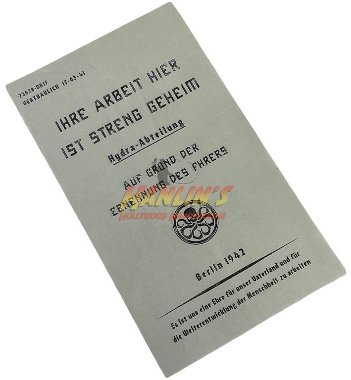 Original Hydra Paperwork (Berlin 1942) used in the production of the superhero film 'Captain America: The First Avenger' (2011) where, Steve Rogers, a rejected military soldier transforms into Captain America after taking a dose of a "Super-Soldier serum". But being Captain America comes at a price as he attempts to take down a war monger and a terrorist organization.
