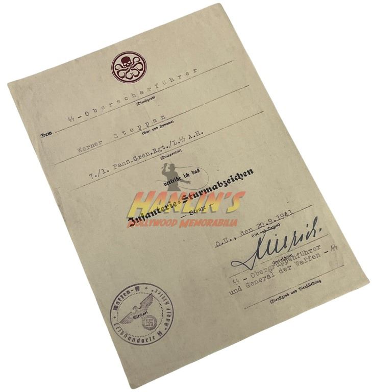 Original Hydra Paperwork (Werner Steppan) used in the production of the superhero film 'Captain America: The First Avenger' (2011) where, Steve Rogers, a rejected military soldier transforms into Captain America after taking a dose of a "Super-Soldier serum". But being Captain America comes at a price as he attempts to take down a war monger and a terrorist organization.
