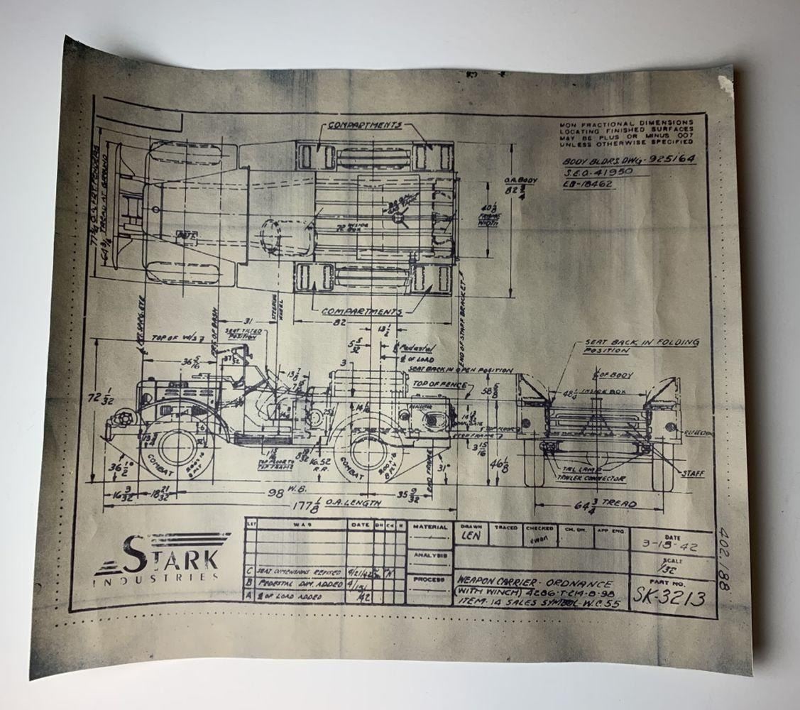 Captain America: The First Avenger (2011) - Stark Wraps Carrier Vehicle Blueprint Prop.