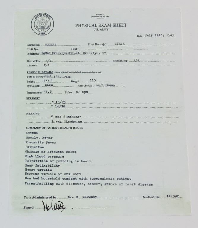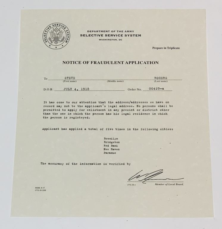 Captain America: The First Avenger (2011) - Steve Rogers Medical and Military Paperwork.