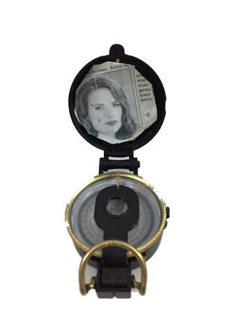 Captain America: The First Avenger (2011) - Steve Rogers/Captain America (Chris Evans) test compass with photo of Peggy Carter from article inside. Metal compass flips open to reveal small magnifier and glow-in-the-dark directional markers.