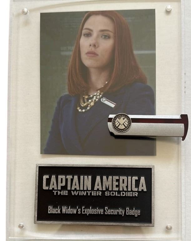 Original explosive security badge used by "Black Widow", played by Scarlett Johansson in the superhero film 'Captain America: The Winter Soldier' (2014).