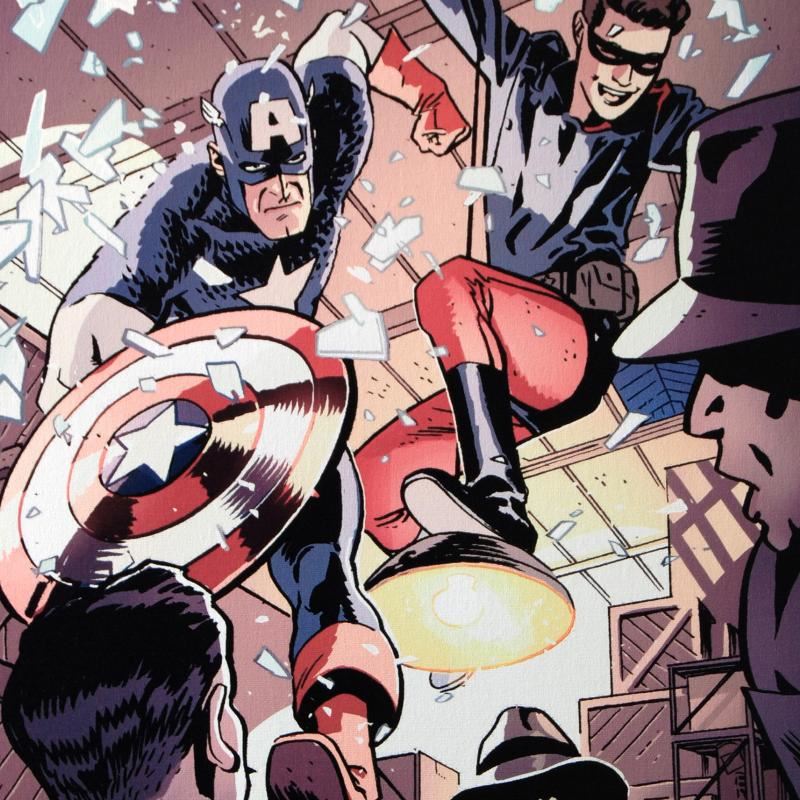A piece of comic book history, this limited edition print, drawn by Chris Samnee, depicts classic characters from the Captain America franchise. Having previously done work on the Thor franchise, Chris Samnee is currently working on Captain America & Bucky with Ed Brubaker and Marc Andreyko. "Captain America and Bucky #621" is a limited edition numbered giclee on stretched canvas by Chris Samnee presented by Marvel Comics. This piece comes gallery wrapped and ready to hang. Includes Certificate of Authenticity! Measure approx. 18" x 27" (image); 1.5" (depth).