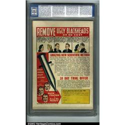 Captain Battle Comics #3 (Magazine Press, 1942) CGC FN- 5.5 Cream to off-white pages. This esoteric book contains the origins of Silver Streak and Lance Hale, with Joe Simon art. The cover is very interesting; there is a woman in bondage who is about to be impaled by several spikes, heroes coming to the rescue, and skulls on the floor. The book has a very faint vertical book-length crease down the middle, and a 1.5" crease in the upper right corner of the front cover. The spine is nice, the color is good, and the pages are cream to off-white. Overstreet 2002 FN 6.0 value = $205. Important notice: We expect to be auctioning lots at the rate of 200-250 per hour. Sometimes eBay Premier live bid software cannot keep up with that pace, so we strongly recommend that you place a realistic proxy bid now as insurance to avoid disappointment. Also please note that all Heritage/CAA lots purchased through eBay Premier carry a 20% Buyer's Premium.