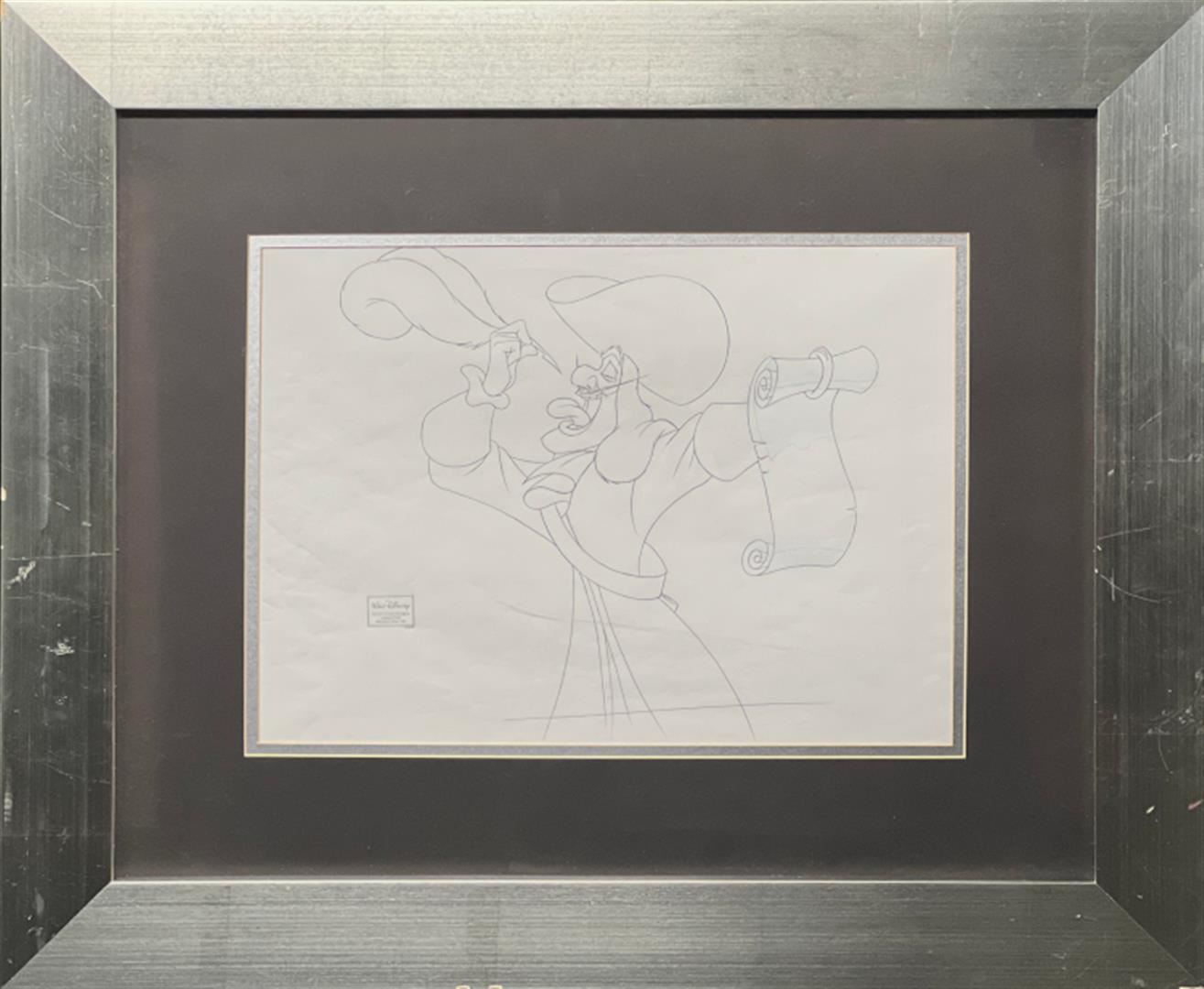 Captain Hook Return to Neverland by Disney. Original One-of-a-Kind Unsigned Pencil Drawing Framed. Fair Condition, Frame Poor Condition. Dimensions: 11 x 15. As Is.