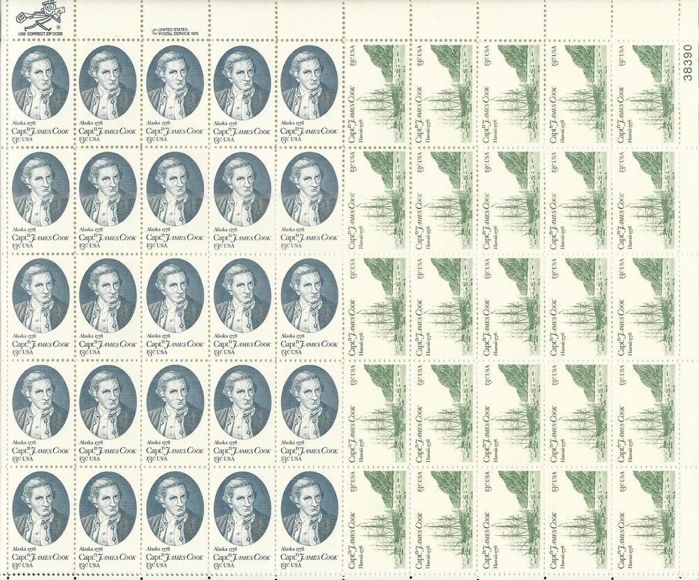 Captain James Cook (Alaska/Hawaii) Sheet of 50 X 13 Cent U.S. Postage Stamps