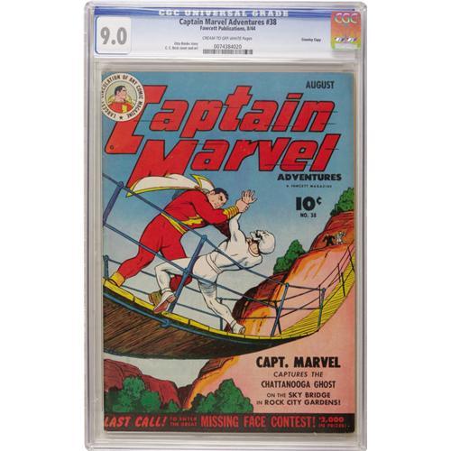 <B>Captain Marvel Adventures #38 Crowley Copy pedigree (Fawcett, 1944) CGC VF/NM 9.0 Cream to off-white pages.</B></I> C. C. Beck cover and art. Otto Binder story. Overstreet 2006 VF/NM 9.0 value = $449; NM- 9.2 value = $610. CGC census 10/06: 2 in 9.0, 2 higher.<BR><BR><b>Shipping:</b> Slabbed Comic (<a target="_blank" href="http://www.heritageauctions.com/common/shipping.php">view shipping information</a>)