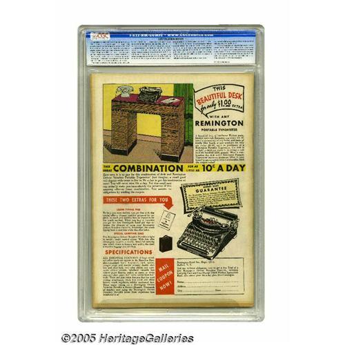 <B>Captain Marvel Adventures #5 Crowley Copy pedigree - File Copy (Fawcett, 1941) CGC VF 8.0 Cream to off-white pages.</B></I> C. C. Beck drew both this issue's vertigo-inducing cover and the interior art. And though the Nazi menace is battled on the cover, it's archfoe Sivana who bedevils Captain Marvel in the stories. Though comics featuring the Big Red Cheese were among the top-selling books of their era, they're tough to find in a decent grade -- as of this writing, only two copies of this issue have been graded higher by CGC. Overstreet 2005 VF 8.0 value = $963. CGC census 8/05: 1 in 8.0, 2 higher. <BR><BR><B>Important notice:</B> Heritage usually auctions material at the rate of 200-250 lots per hour. On some occasions eBay Live bid software or the Internet may not be able to keep up with the pace of the auction. We recommend placing a realistic absentee bid now as insurance to avoid disappointment. Occasionally the auctioneer may eliminate or reject an eBay Live bid, and the auctioneer may also reopen a lot after the close of the eBay live bidding (usually because we missed an audience bid), and may reject your bid even if it shows you as the winning bidder. By bidding via eBay Live, you agree that Heritage may award the lot to another bidder at its sole discretion under the circumstances described above or any other reasonable circumstances. Since eBay bids are not shown to us until we open the lot on the floor, we treat those bids just like floor bids. In most cases the floor responds before the eBay bid is presented to us, due to Internet lag time, so for consistency we have made it a policy that floor bids are always considered first over tie eBay live bids. Also please note that all Heritage lots purchased through eBay Live carry a 20% Buyer's Premium. Please make sure you read the Terms and Conditions before you bid. This lot is being auctioned in conjunction with a live floor auction by Heritage Galleries & Auctioneers. All final auction and invoice in
