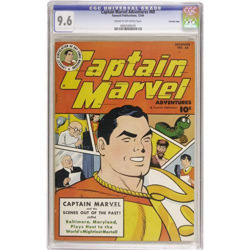 <B>Captain Marvel Adventures #68 Crowley Copy pedigree (Fawcett, 1946) CGC NM+ 9.6 Cream to off-white pages.</B></I> Overstreet 2006 NM- 9.2 value = $325. CGC census 10/06: 1 in 9.6, none higher.<BR><BR><b>Shipping:</b> Slabbed Comic (<a target="_blank" href="http://www.heritageauctions.com/common/shipping.php">view shipping information</a>)