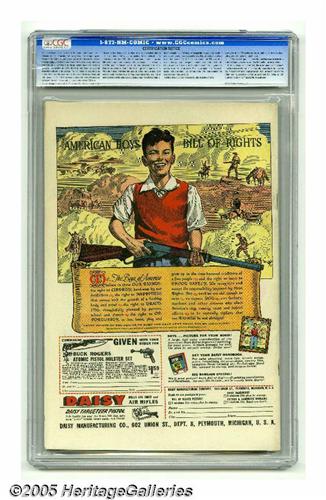 50. Auctioneer offers no opinion as to the validity of a grade assigned by any third-party grading service. Since we cannot examine C.G.A. encapsulated notes or Comics Guaranty Corporation (CGC) encapsulated comics, they are sold "as is" without our grading opinion, and may not be returned for any reason. Auctioneer shall not be liable for any patent or latent defect or controversy pertaining to or arising from any encapsulated collectible. In any such instance, purchaser's remedy, if any, shall be solely against the certification service certifying the collectible.
