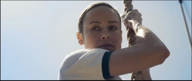 Captain Marvel (2019) - Background character, white women's t-shirt (small). Worn in the US Air Force Academy flashback scene. Shirt is a 50/50 poly-cotton blend, white torso and sleeves with navy blue edges on sleeves and neck.