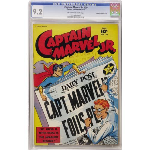 <B>Captain Marvel Jr. #39 Crowley Copy/File Copy (Fawcett, 1946) CGC NM- 9.2 Cream to off-white pages.</B></I> Sivana Jr. Appearance. Overstreet 2006 NM- 9.2 value = $385. CGC census 9/06: 1 in 9.2, none higher.<BR><BR><b>Shipping:</b> Slabbed Comic (<a target="_blank" href="http://www.heritageauctions.com/common/shipping.php">view shipping information</a>)