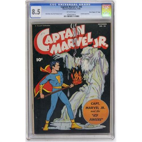 <B>Captain Marvel Jr. #45 Davis Crippen ("D" Copy) pedigree (Fawcett, 1946) CGC VF+ 8.5 Off-white pages.</B></I> Acrobat appearance. Bud Thompson cover. Overstreet 2007 VF 8.0 value = $154; VF/NM 9.0 value = $237. CGC census 9/07: 3 in 8.5, 3 higher.<BR><BR><b>Shipping:</b> Comics - Slabbed (certified) (<a target="_blank" href="http://www.heritageauctions.com/common/shipping.php">view shipping information</a>)