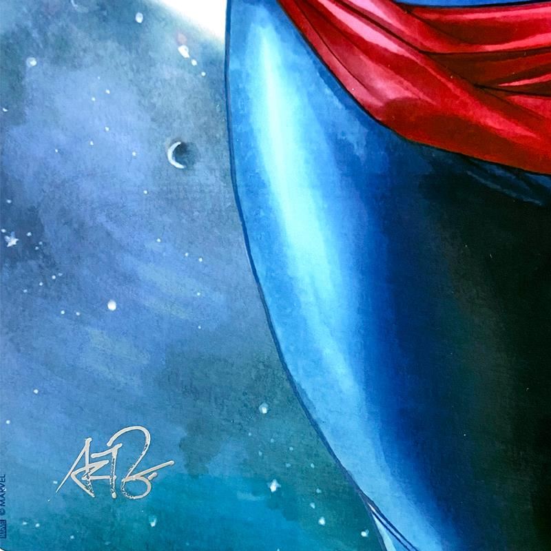 "Captain Marvel" is a limited edition giclee on aluminum from Marvel Comics and Stanley "Artgerm" Lau, PP numbered 1/2 and bearing the authorized signature of the artist. Includes Letter of Authenticity. Measures approx. 24" x 16" (image).