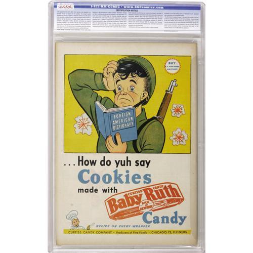 Leonard Frank art. Bears a "Checking Copy" stamp on the cover. Overstreet 2006 VF/NM 9.0 value = $430; NM- 9.2 value = $585. CGC census 12/06: 2 in 9.0, none higher.<BR><BR><b>Shipping:</b> Slabbed Comic (<a target="_blank" href="http://www.heritageauctions.com/common/shipping.php">view shipping information</a>)