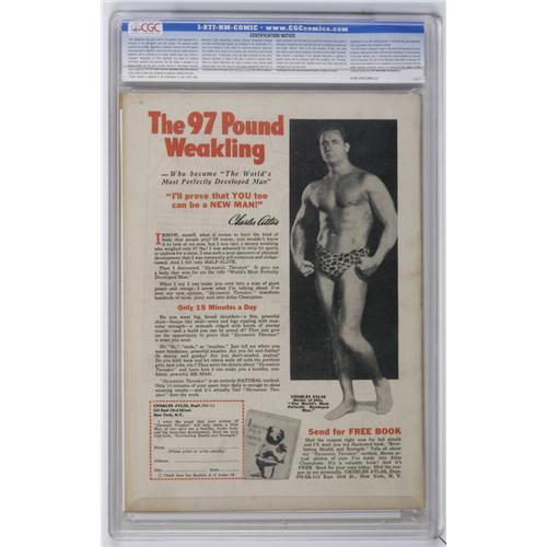 Jack Binder cover. The Gremlins make an appearance. Bears a "Checking copy" stamp on the cover. Overstreet 2006 VF 8.0 value = $719. CGC census 12/06: 1 in 8.0, 2 higher.<BR><BR><b>Shipping:</b> Slabbed Comic (<a target="_blank" href="http://www.heritageauctions.com/common/shipping.php">view shipping information</a>)