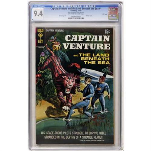 <B>Captain Venture & The Land Beneath The Sea #1 - File Copy (Gold Key, 1968) CGC NM 9.4 Off-white to white pages.</B></I> Painted cover. Dan Spiegle art. CGC notes, "From the Random House Archives." Overstreet 2007 NM- 9.2 value = $65. CGC census 10/07: 9 in 9.4, 2 higher.<BR><BR><b>Shipping:</b> Comics - Slabbed (certified) (<a target="_blank" href="http://www.heritageauctions.com/common/shipping.php">view shipping information</a>)