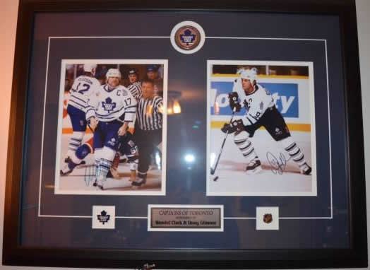 Captains of Toronto (TML) Wendell Clark and Doug Gilmour Autographed Photo professionally framed.