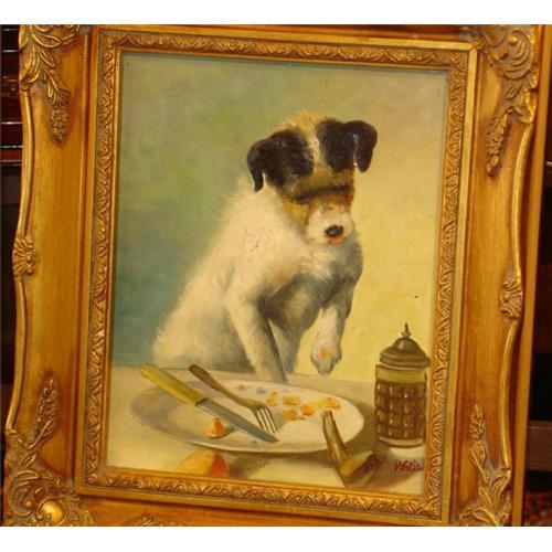 Captivating Oil on Board, Dog at Plate #899689