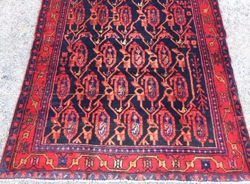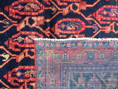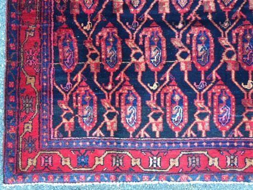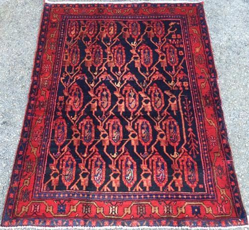 Captivating, Unusual Design Fine Persian Mission-Malayer Rug. 100%Natural, vegetable dye, hand woven, hand spun, baby lamb's wool pile on cotton foundation. "Mission" is a hamlet in the proximity of the town of Malayer. Malayer is a town located in the western region of Iran. These rugs display uniqueness in the broad range of designs and choices of colors. They are true artistic creations, and their value reflects their artistry. Mission-Malayer rug production has always been few and far in between and therefor very much desirable and sought after. This is a rare mid- 20th century piece with a rare all-over paisley design in mint condition. Please notice the charming effect of the larger paisleys being pregnant with a smaller ones in their bellies. This lovely piece becomes even more intriguing when one is reminded of the fact that, these pieces are woven by women of the household with very little education, if any at all. This represents man's intrinsic genius, striving for beauty and perfection, and in this case, in the form of a hand woven rug, an art underfoot. Size: 5 feet 7 inches X 4 feet 7 inches. Country of Origin: Iran.