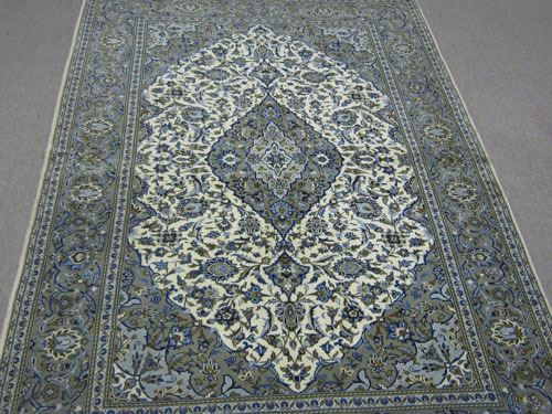 Handmade 100% vegetable baby lamb's wool pile on cotton foundation. This is an exquisite Kashan design on a beige background with a central medallion and elegant teardrops enhanced with crowned corners utmost beauty. it is rather rare to come across rugs with such predominant soft tones for indeed the city of Kashan lies at the edge of the desert. This is a magnificent royal Kashan. Dimensions for rug from top to bottom :Height 84 X Width 58 inches. Size: 7 feet X 4 feet 8 inches. Country of Origin: Iran.