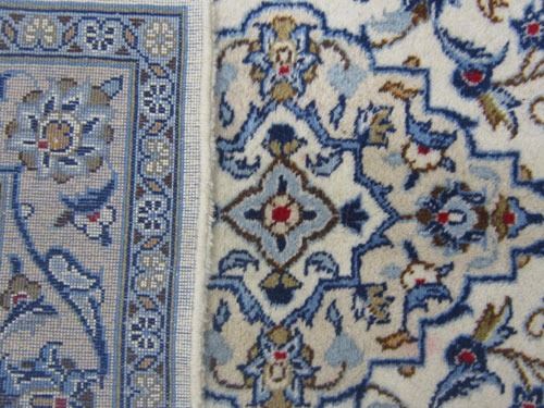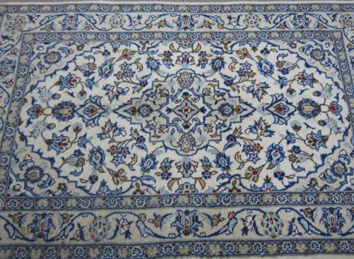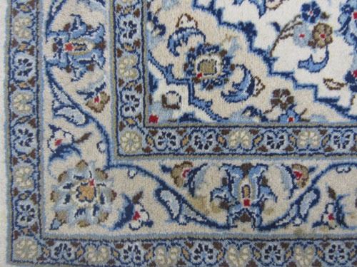 Handmade 100% vegetable baby lamb's wool pile on cotton foundation. This is an exquisite Kashan design on a beige background with a central medallion and elegant teardrops enhanced with crowned corners utmost beauty. it is rather rare to come across rugs with such predominant soft tones for indeed the city of Kashan lies at the edge of the desert. This is a magnificent royal Kashan. Dimensions for rug from top to bottom :Height 60 X Width 41 inches. Size: 5 feet X 3 feet 4 inches. Country of Origin: Iran.