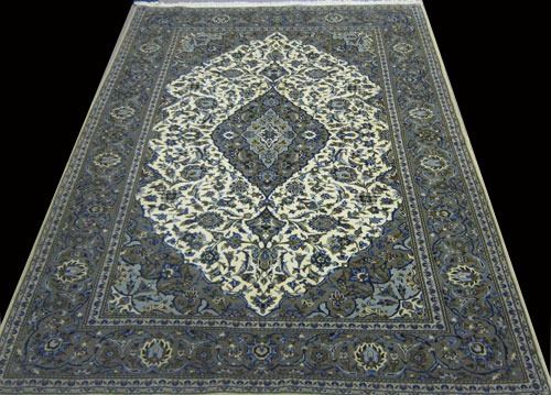 Handmade 100% vegetable baby lamb's wool pile on cotton foundation. This is an exquisite Kashan design on a beige background with a central medallion and elegant teardrops enhanced with crowned corners utmost beauty. it is rather rare to come across rugs with such predominant soft tones for indeed the city of Kashan lies at the edge of the desert. This is a magnificent royal Kashan. Dimensions for rug from top to bottom :Height 84 X Width 58 inches. Size: 7 feet X 4 feet 8 inches. Country of Origin: Iran.