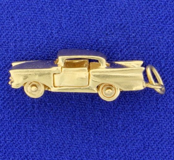 The car is 14K yellow gold and is 1 inch long. The wheels turn and the doors open! 4.9g