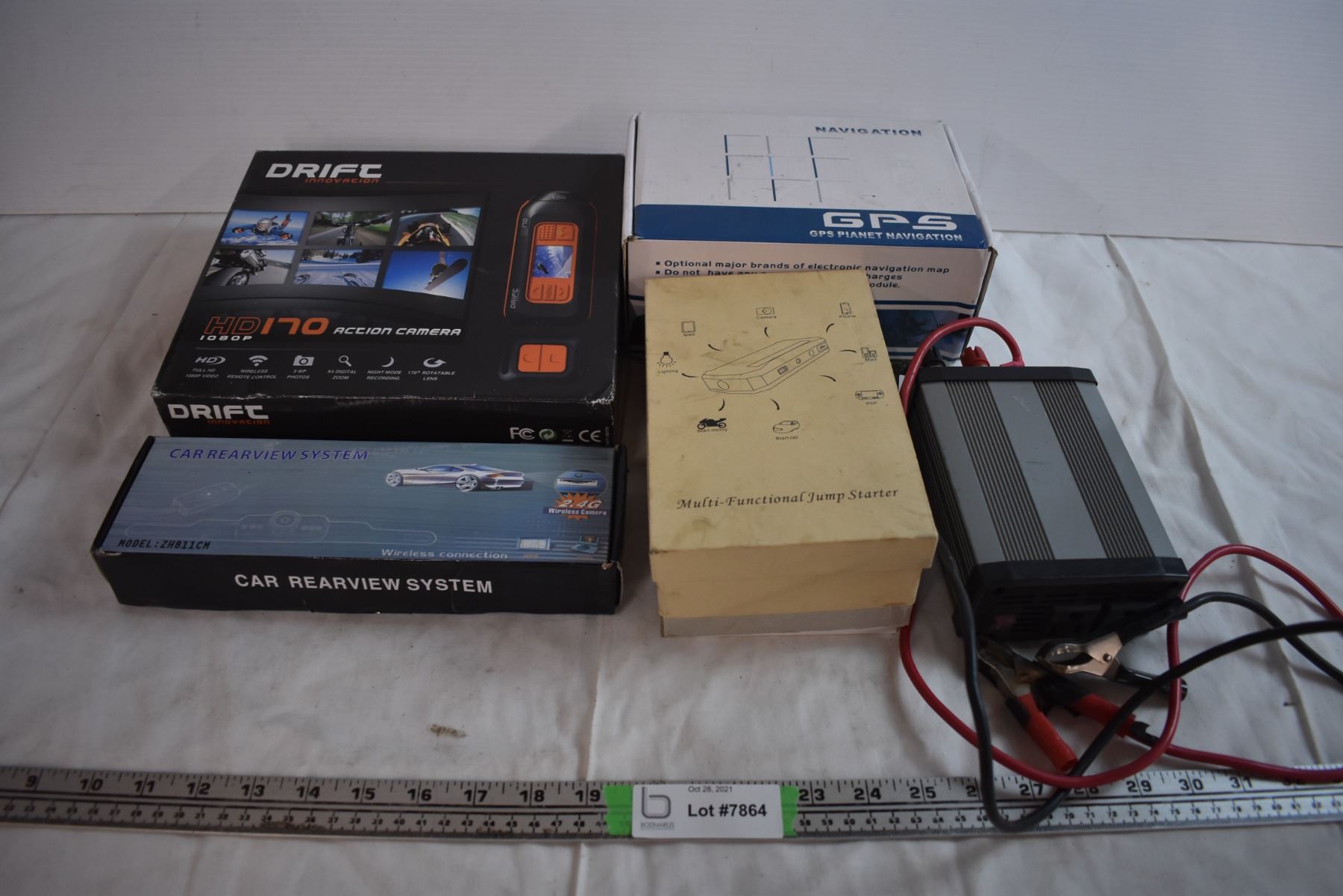 Car GPS, Rearview Camera, Action Camera, Power Inverter, and Jump Starter