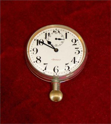 Montre de voiture DOXA, cadran en émail à chiffres arabes, petite seconde à midi et remontoir à 6 heures, triple fond vitré, échappement ancre, en bon état, env. 1940