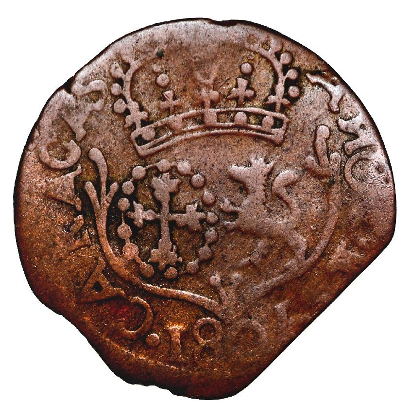 Caracas, Venezuela, copper 1/4 real, Charles IV, 1805, retrograde 4, very rare, NGC VF 30 Brown ("top pop"). Cal-6; KM-C1; Stohr-2. 1.72 grams. Odd-shaped flan (with mint-made clip-adjustment on edge) showing lightly struck details (bottom of 5 of date too weak to read), desirably well preserved without the usual environmental damage, tied with one other for finest known in the NGC census (although the census does have an XF 45 without indication of the orientation of the 4), from a rare and popular series of copper cuartos (1/4R) and octavos (1/8R) struck in 1802-5 to alleviate a shortage of small coinage, effectively the first coins ever struck in Venezuela.