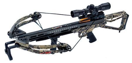 Carbon Express Covert CX3 SL Archery Set 355 FPS 185 lbs Camo Carbon Express crossbows not only have power and speed, they are designed for all types of hunters, with an optimal balance point that helps deliver deadly accuracy. Each bow is manufactured using state-of-the-art performance carbon-infused limbs, CNC-machined risers, premium alloy cam sets and tunable synthetic strings and cables for superior precision. TheCX-3 SL gives blazing speed of 355 FPS in a compact, slim-line design with a highly engineered stock. A 4x32 deluxe lighted scope, with red/green dual illumination, is attached to Picatinny rail for improved accuracy. The kit includes rope cocker, 3 arrow quiver, 3 Mayhem 20" crossbolts, rail lubricant and 3 practice points.
