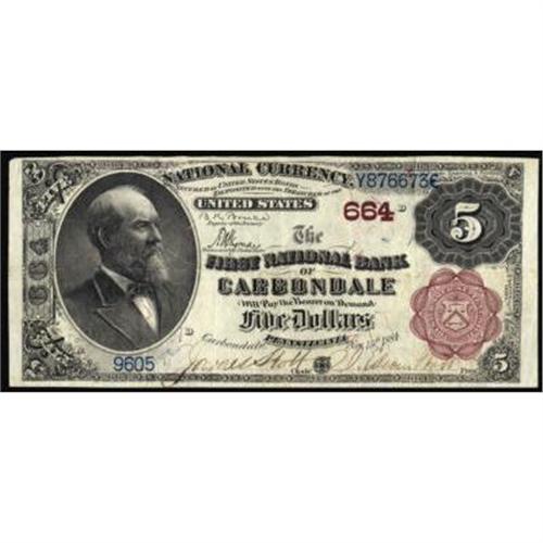 Carbondale, PA. $5 1882 Brown Back. Fr. 467. The FNB. Charter #664. PCGS Very Fine 20.