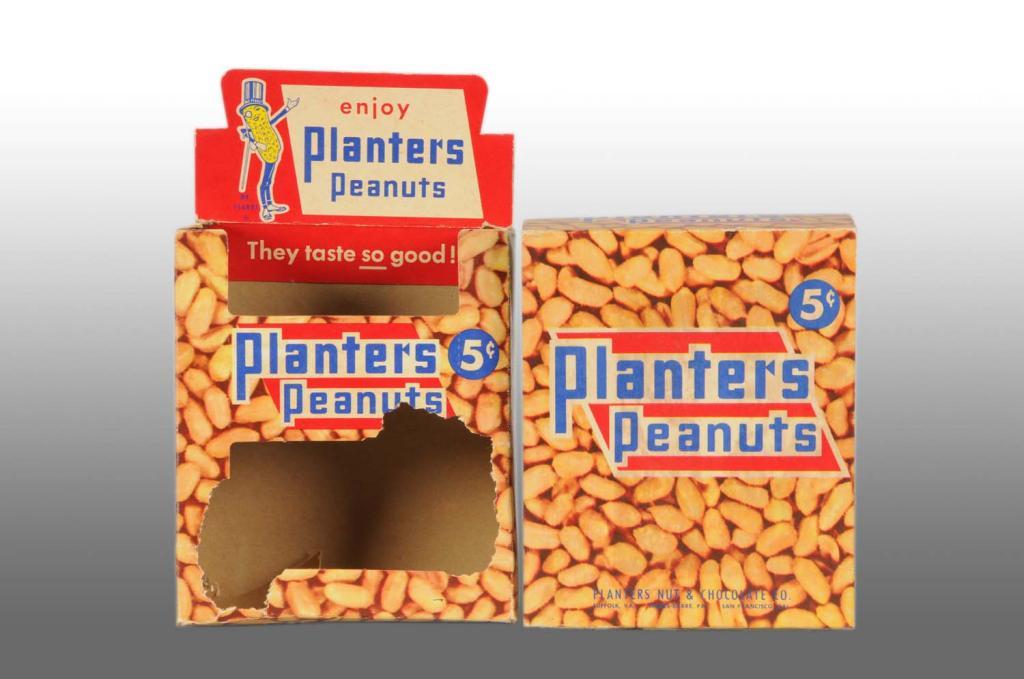 1940s. Cardboard has original die-cut attached to the top and cardboard sleeve that would have gone over box. Box and sleeve do have wear. Box appears to be chewed by a mouse and sleeve is torn. Colors and graphics are strong. Advertising Display Condition (Good). Size 5 - 1/2" x 6 - 1/2" x 3 - 1/4".