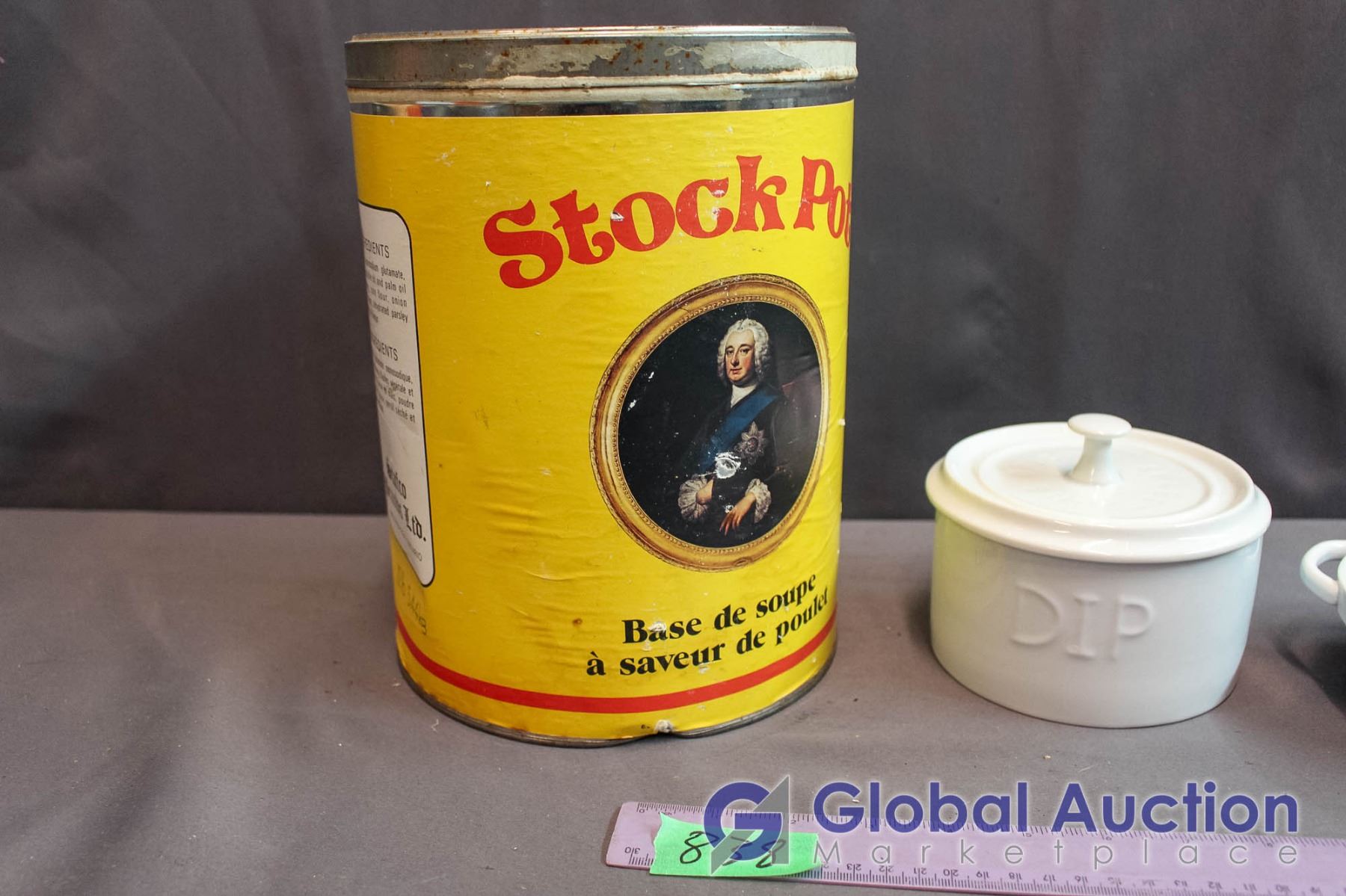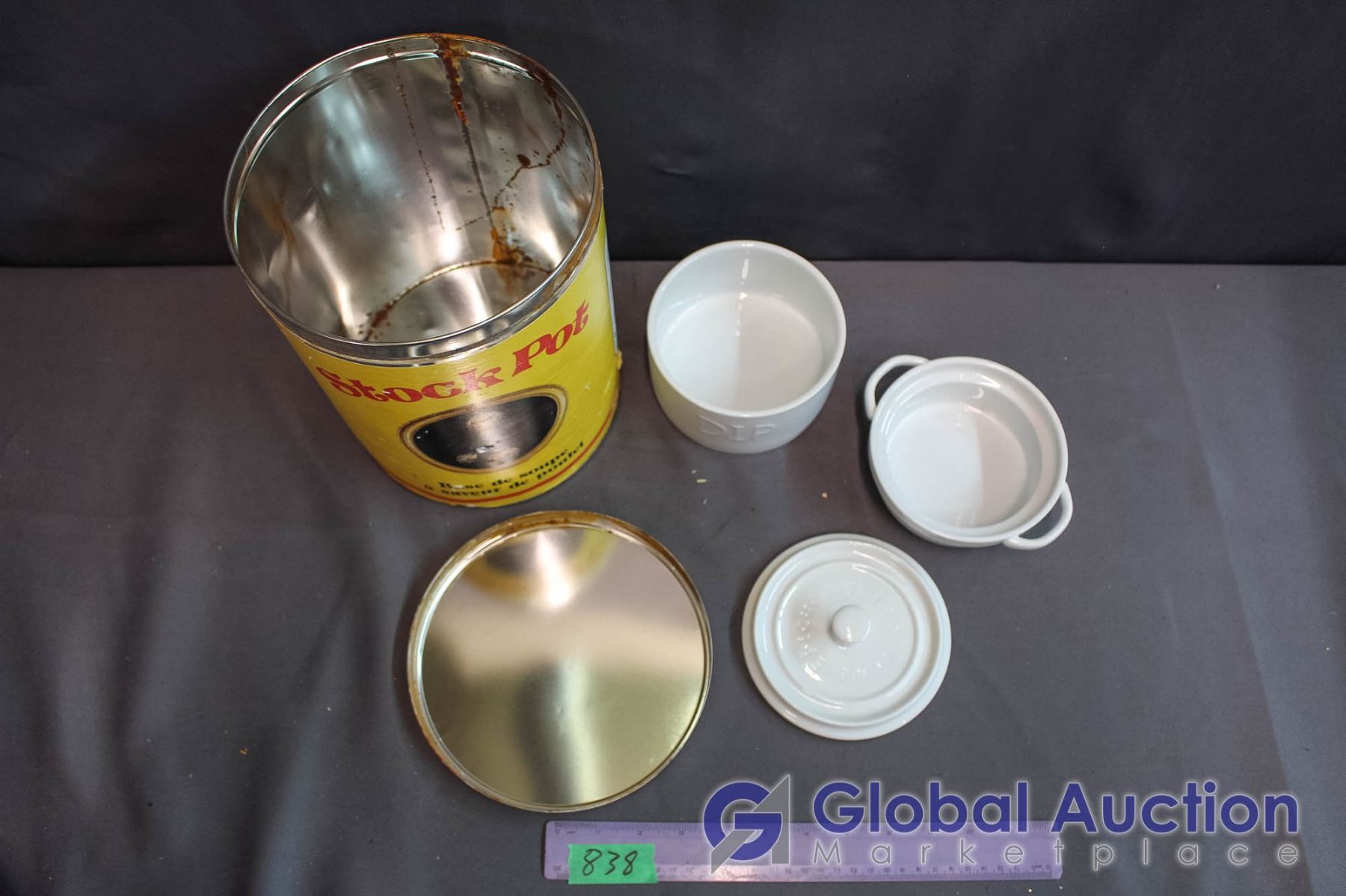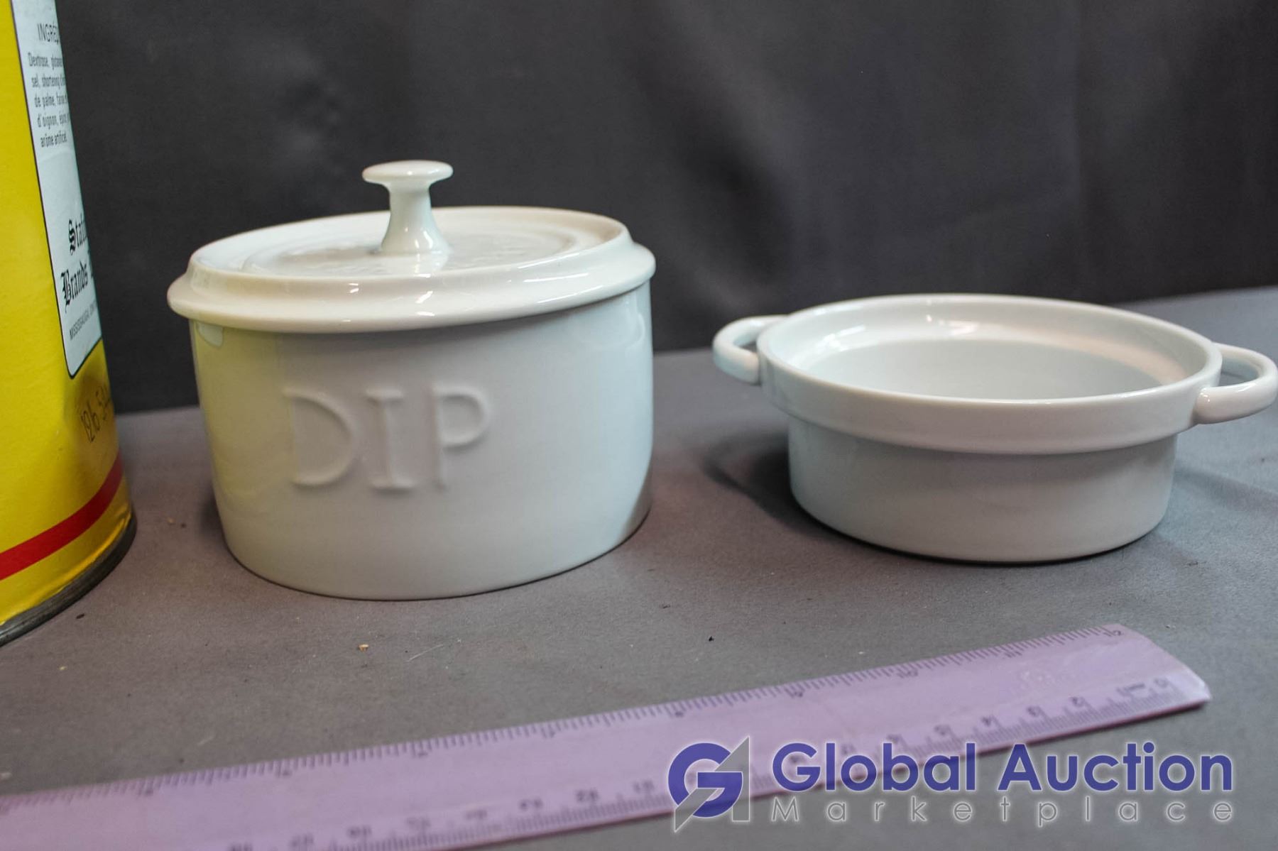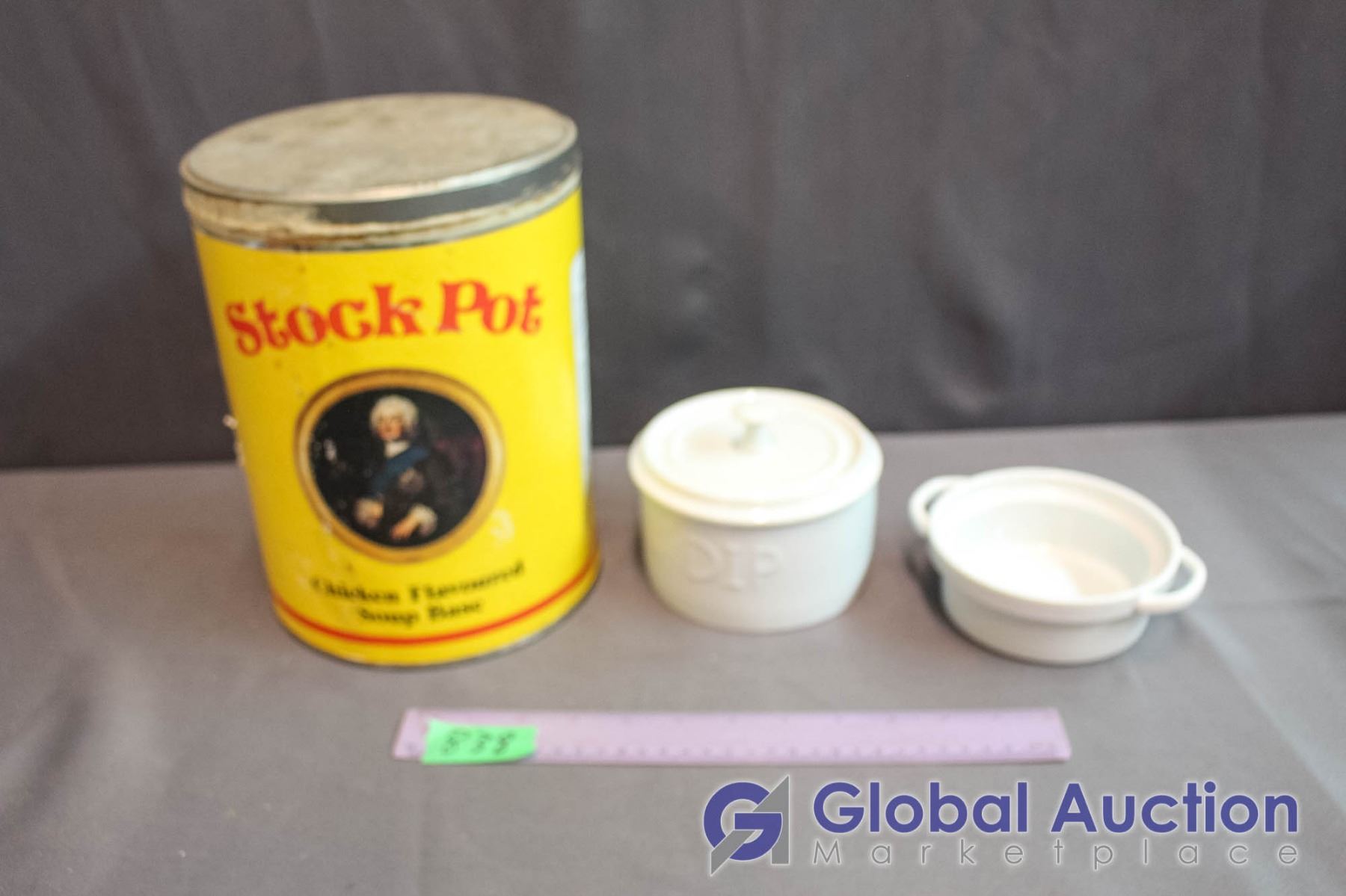 Cardboard Stock Pot Container, 2 Ceramic Dip Containers - 1 With Lid