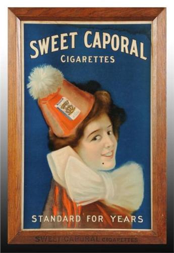 Description Dated 1909. Manufactured by the American Tobacco Company. Includes original marked frame. Great graphics and color with only a few faint stains and minor marks with light soiling. Condition (7.5 - 7.8, Very Good). Size 22" x 32".