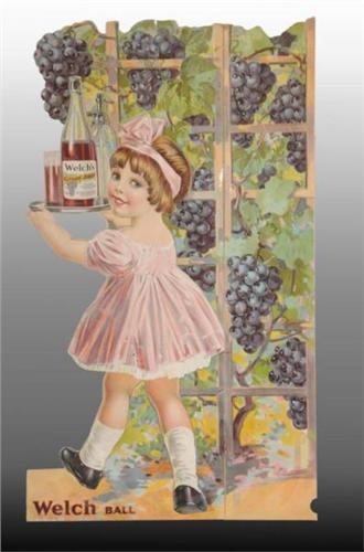 Description Advertising sign for Welch's Grape Juice. Minor peripheral creases to the cardboard. Good color. Condition (Excellent). Size 24 - 3/4" x 14 - 1/2".