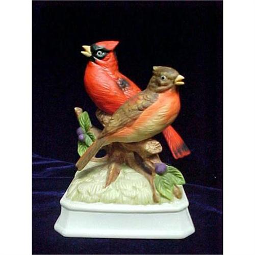 Cardinal Music Box by Gorham. Plays, "You are the sunshine of my life". Beautifully painted Cardinal and a Friend atop a branch. Measures approx. 6 inches tall and in good condition.
