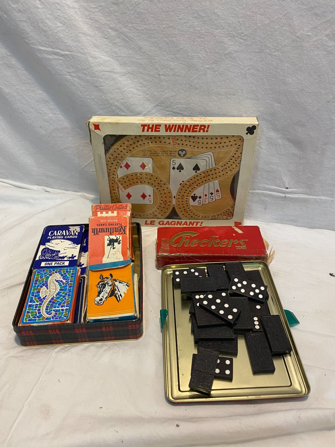 Cards, crib board dominos