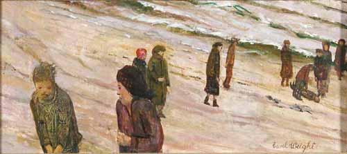 Carel Weight (1908-1997) oil on board, Figures on a beach, signed, 7.5 x 17 ins....