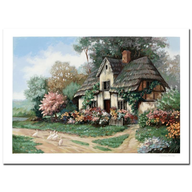 "Caretaker's Cottage" is a limited edition serigraph on paper, from an AP edition and hand by Earlene Moses. Includes Certificate of Authenticity! Measures approx. 39" x 28" (with border), 35" x 24" (image).