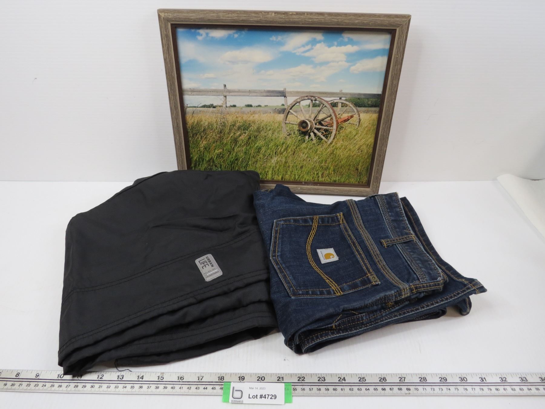 Carhartt Jeans (size 6 regular) - Urban Life Pants (size9) - Framed Picture (15 1/2" x 13 3/4")