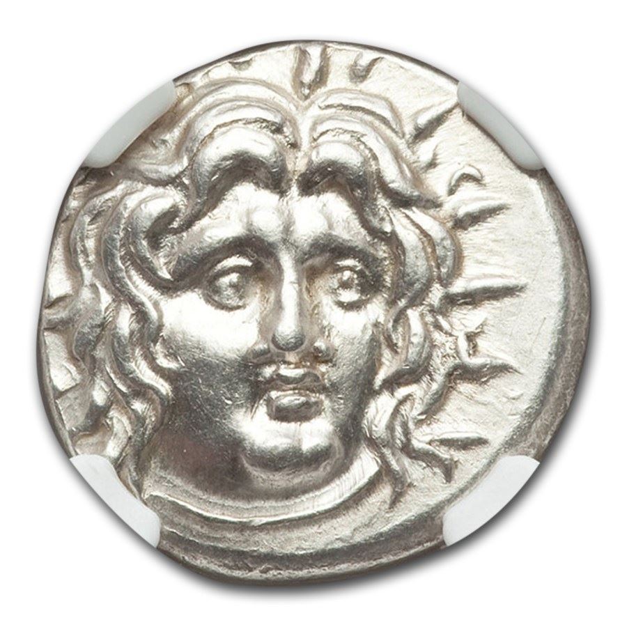 Carian Islands Rhodes AR Didrachm Helios (125-84 BC) MS NGC