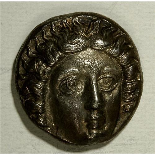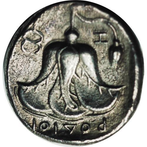 <B>Carian Islands, Rhodes.</B></I> Ca. 404-375 B.C. AR tetradrachm (22 mm, 14.81 g). Head of Helios facing slightly right / Rose with bud to left; I in left field, kerykeion in right; all within incuse square. Ashton, 'Hecatomnus Hoard' 190 (A123/P127; this coin); BMC 17 (same reverse die); SNG von Aulock -. <B>Toned EF,</B></I> light porosity. Exceptional style. <I>Ex Hess/Leu 49 (27 April 1971), 228.</B></I><BR><BR><b>Shipping:</b> Coin/Currency (<a target="_blank" href="http://www.heritageauctions.com/common/shipping.php">view shipping information</a>)